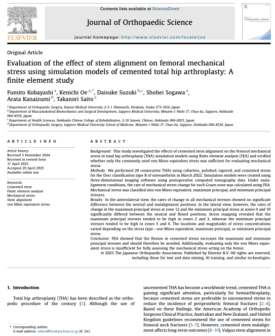 セメントステムの応力分析で屈曲位のストレスが高いことがわかりました。