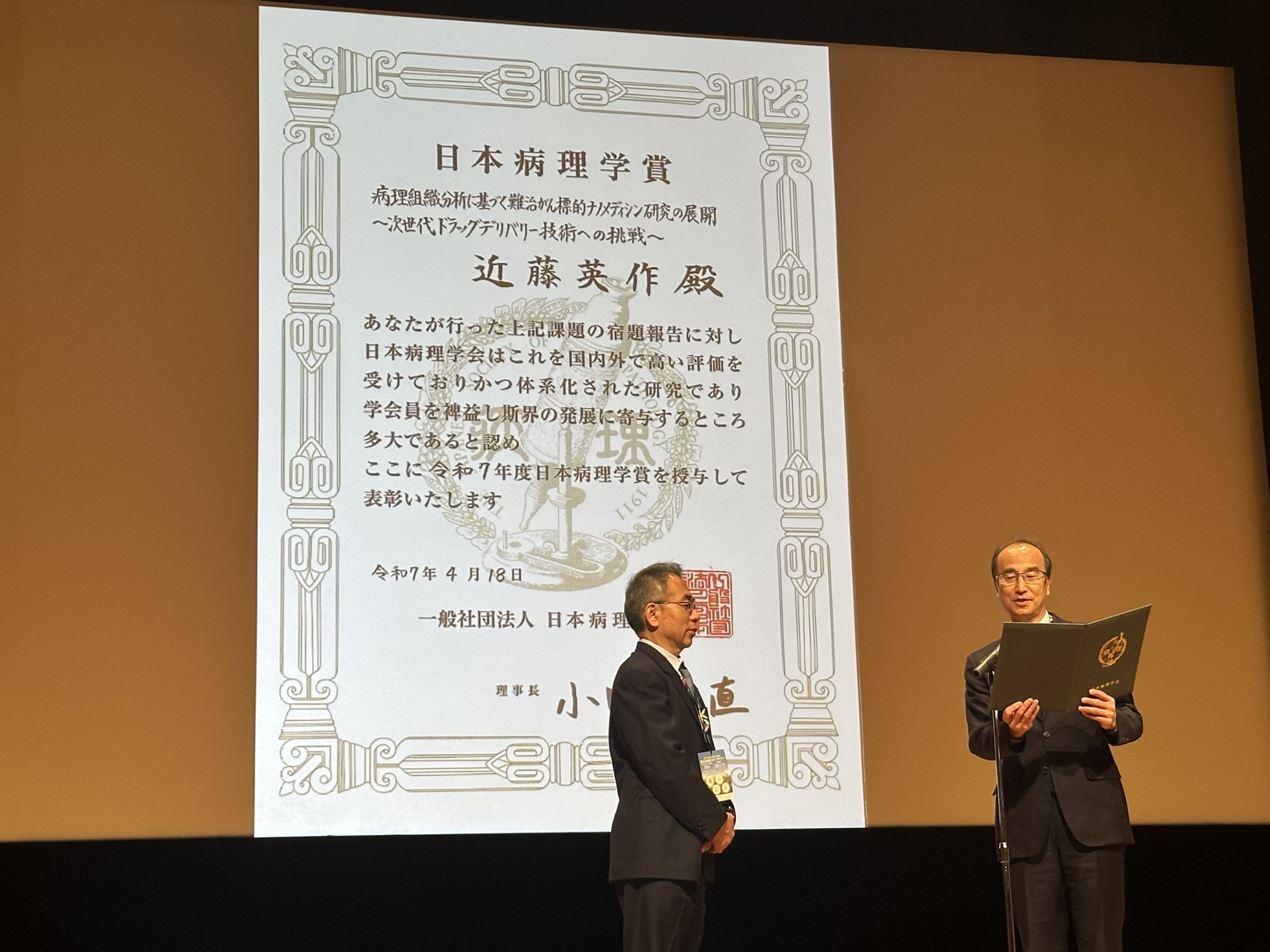 2025年 近藤学長特命教授「日本病理学賞」授賞式1
